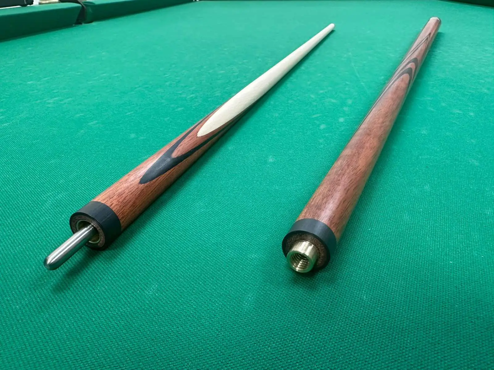 В основе кия — отборный черный граб, славящийся своей прочностью, стабильностью и насыщенным темным оттенком. Поверхность обработана в технике сатинирования, что придает дереву мягкий шелковистый блеск и приятную бархатистую фактуру.