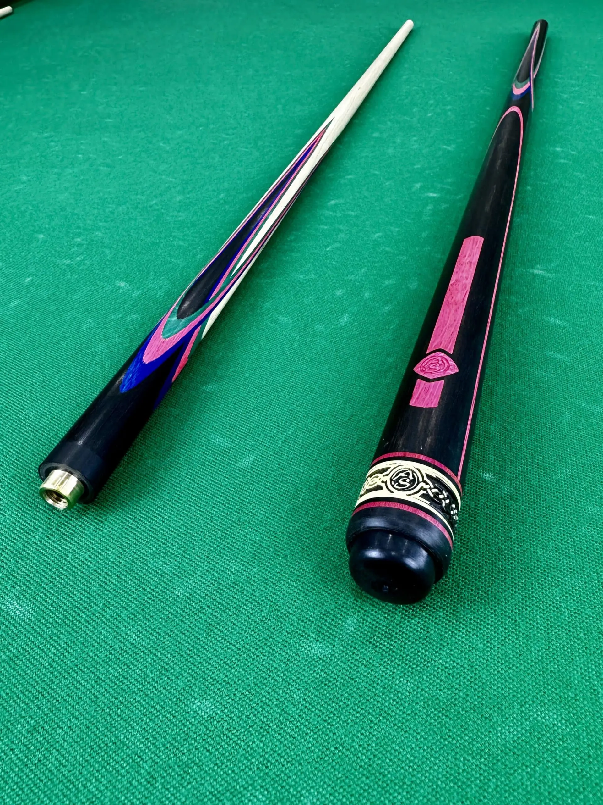 Первое, что бросается в глаза при взгляде на этот кий, — это его яркая и необычная расцветка. Основой для него послужил эбен — древесина, известная своей плотностью, прочностью и, конечно, глубоким черным цветом. Эбен не только придает киеву элегантность, но и обеспечивает его долговечность и отличные игровые качества.