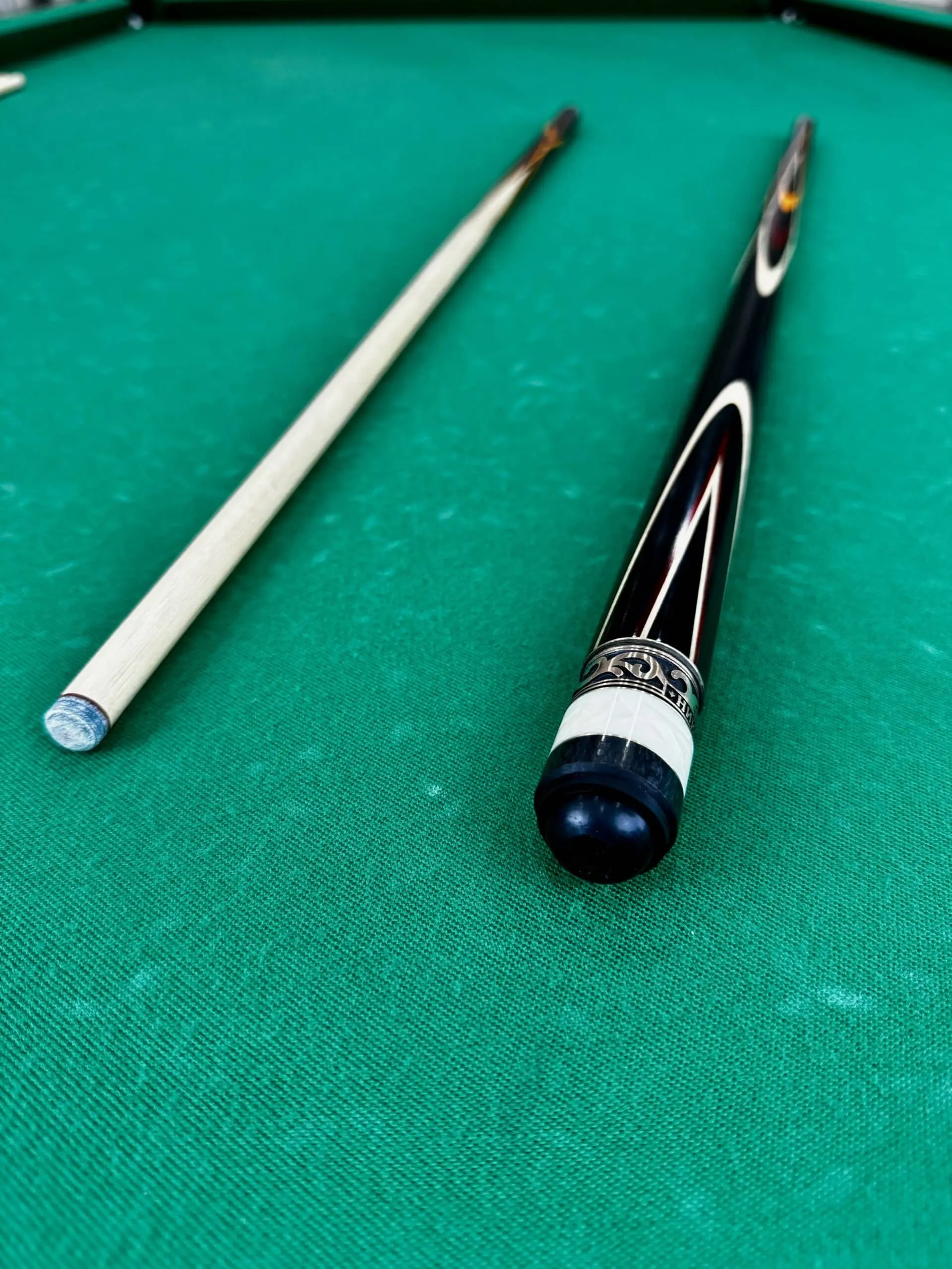 Кий из чёрного граба и амарилло со вставкой из падука – это не просто инструмент, это отражение индивидуальности игрока. Максим учитывает все пожелания своих клиентов, создавая кии, которые идеально подходят их стилю игры и личным предпочтениям.