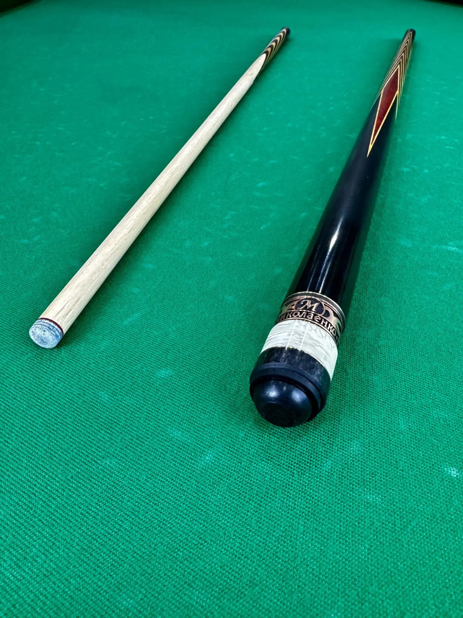 Бильярдный кий Николаенко: 12 запилов, Чёрный граб и вставка из Падука — искусство и точность в каждой детали