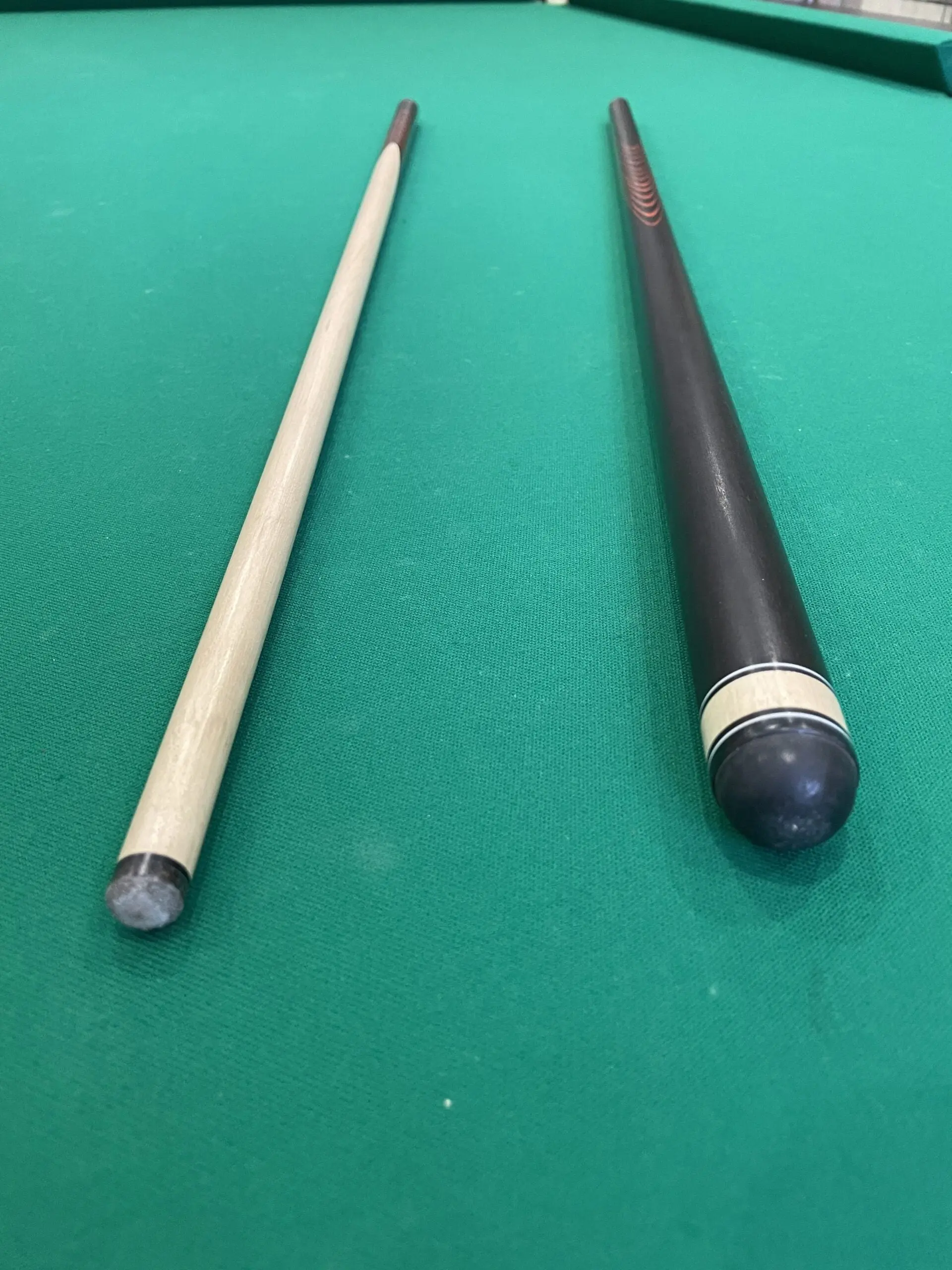 свойствами,упругостью и плотностью. Кий изготовлен из черного