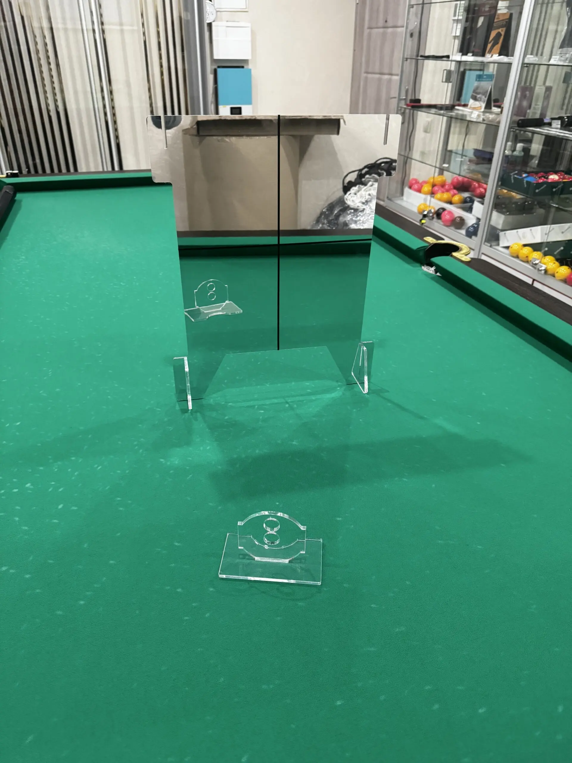 На зеркальной поверхности имеется горизонтальная линия для правильного расположения головы по линии глаз. И вертикальная линия, по ней совмещаются кий, подбородок и локоть (так называемый “плавник”).