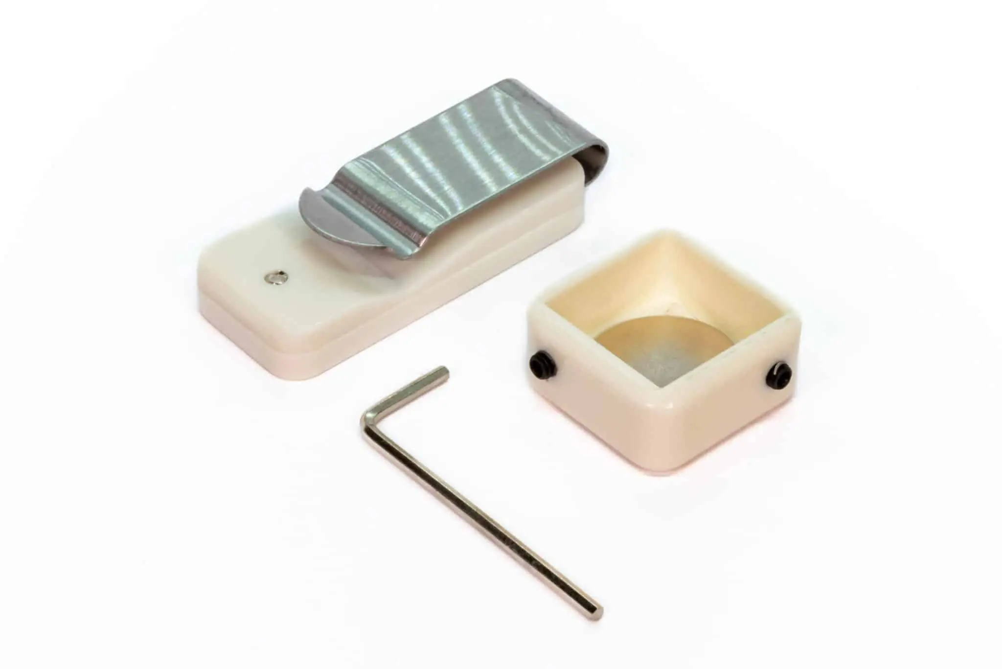С помощью шестигранника и винта можно подстроить клипсу под мелки различного размера.