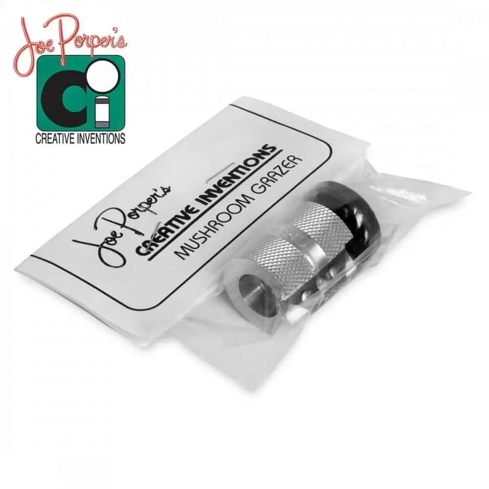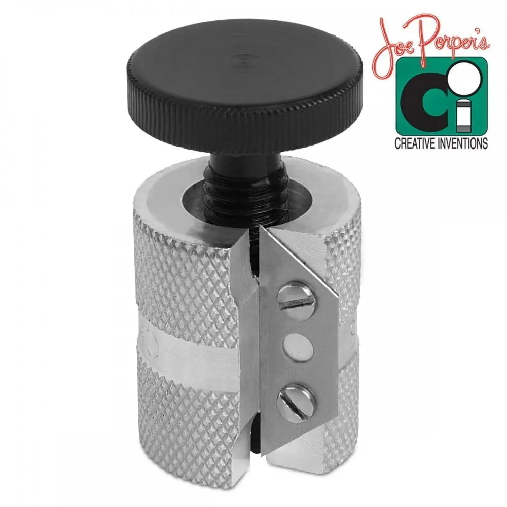 Инструмент Joe Porper`s Mushroom Grazer предназначен для обработки краев наклейки диаметром до 14 мм при появлении у нее формы “грибной шляпки”. Такой дефект снижает качество игры, т.к. игрок не имеет возможности сделать точный, аккуратный удар. Выходящие за пределы диаметра шафта края деформированной наклейки необходимо аккуратно срезать. Joe Porper`s Mushroom Grazer поможет быстро привести наклейку в порядок. Для этого наденьте инструмент на шафт с наклейкой, при помощи винта отрегулируйте высоту установки лезвия таким образом, чтобы под него попала только наклейка. Удерживая одной рукой инструмент, другой аккуратно поворачивайте шафт. Сделайте полный оборот кия внутри инструмента и снимите Joe Porper`s Mushroom Grazer с кия. После того, как излишки наклейки будут срезаны, следует отполировать ее края и, при необходимости, продолжить обработку для придания наклейке правильной сферической формы и необходимой текстуры. Двустороннее лезвие инструмента для обработки наклейки Joe Porper`s Mushroom Grazer изготовлено из стали, которая используется при производстве хирургических инструментов. Это позволяет делать аккуратные срезы, не расслаивая края наклейки. Чтобы сменить режущую сторону лезвия, необходимо открутить винты, перевернуть лезвие и снова прикрутить его к корпусу.