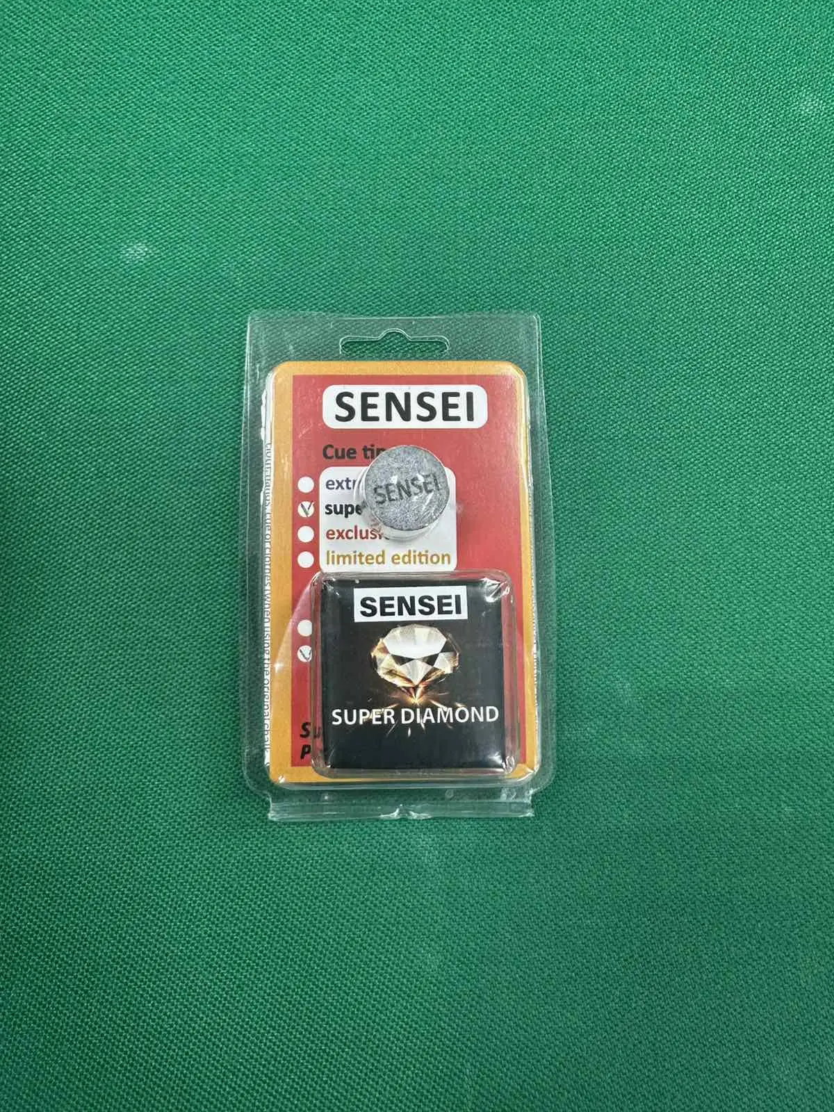 Наклейка для бильярдного кия SENSEI super exstrem 14мм + мел Super Diamond в блистере 1шт.