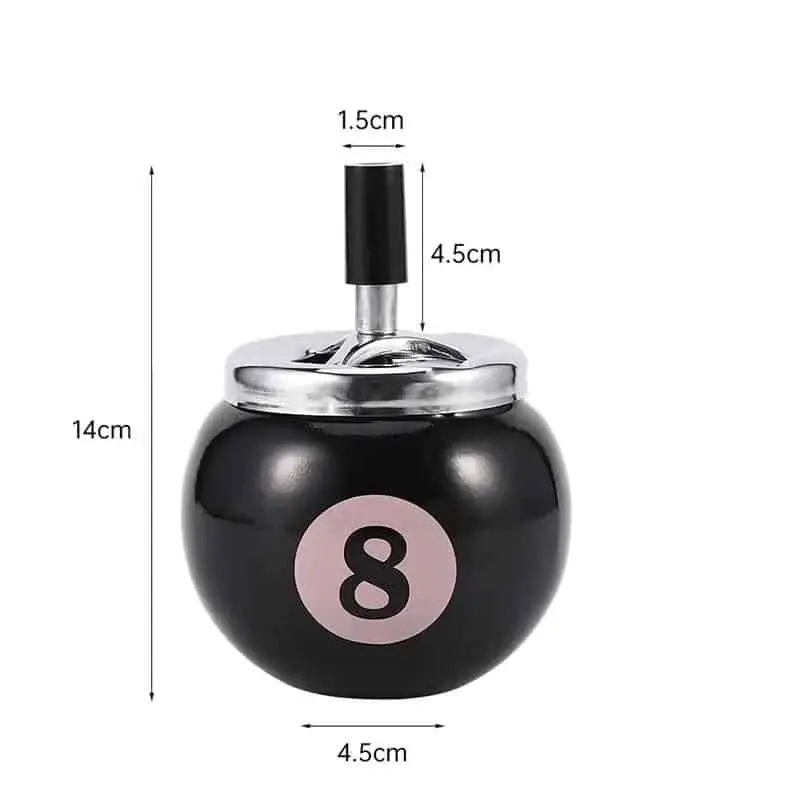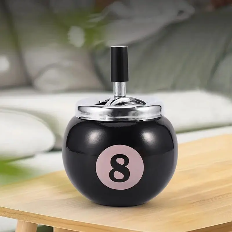Пепельница на подставке «Бильярдный шар №8» — полезная принадлежность, которую можно смело дарить любому курящему человеку, интересующемуся игрой на бильярде.