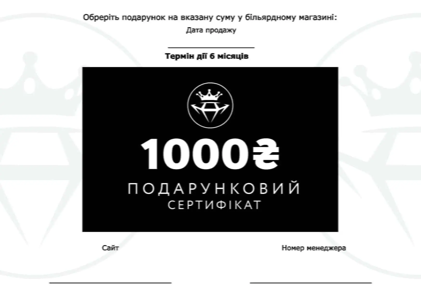 Сертификат 1000 гривен действителен по месту продажи при условии, что сумма чека больше или равна указанному номиналу.