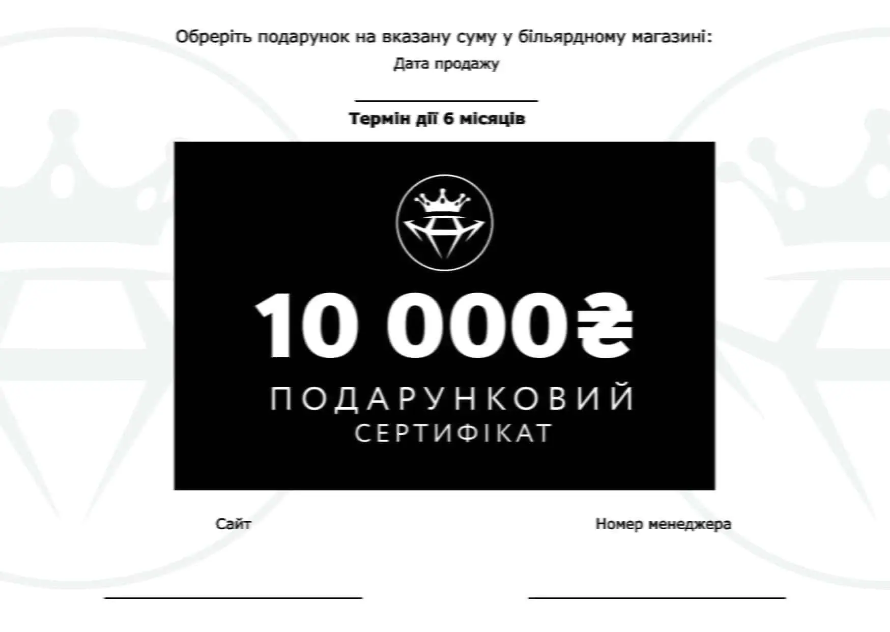 Сертификат 10000 гривен