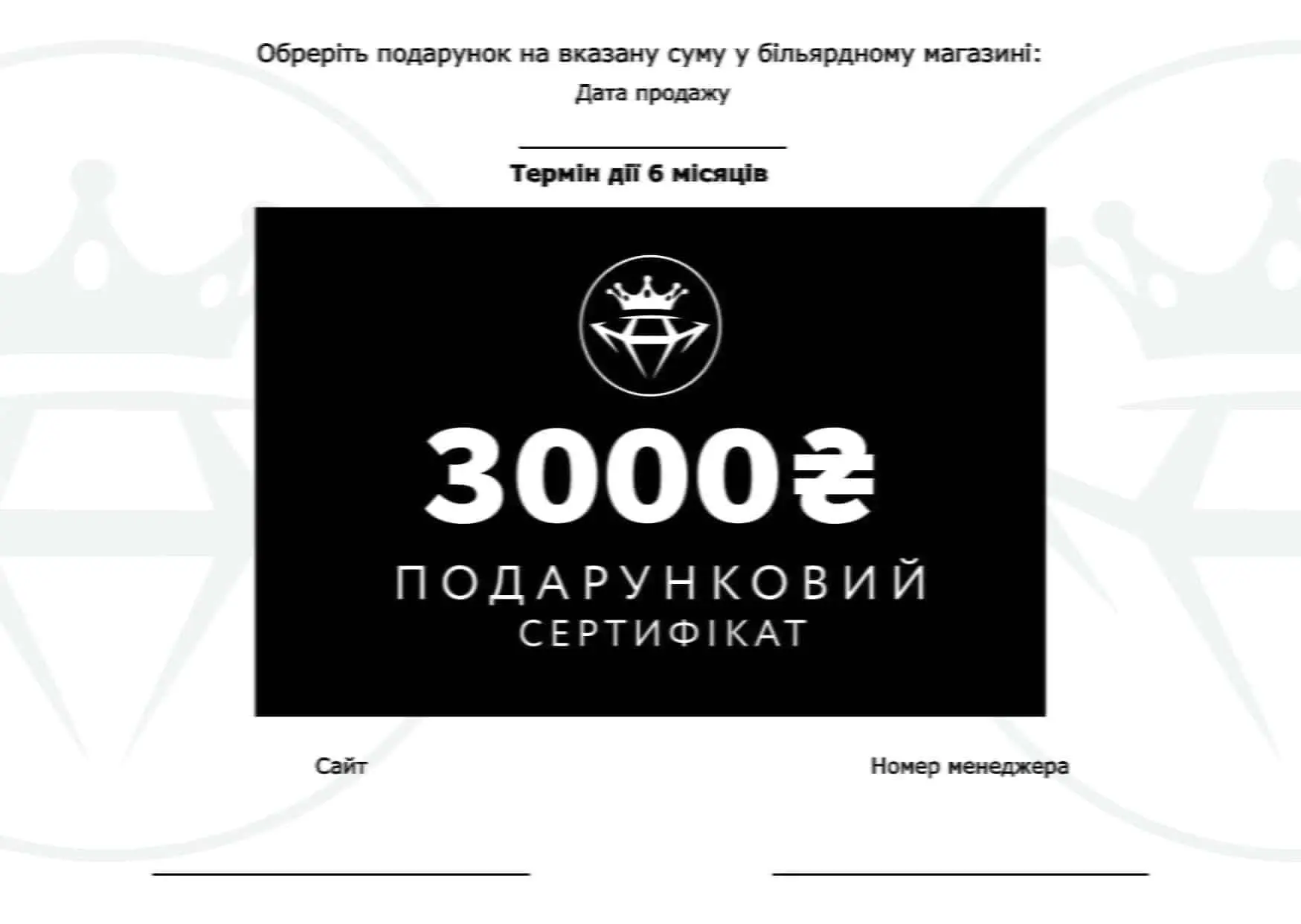 Сертификат 3000 гривен