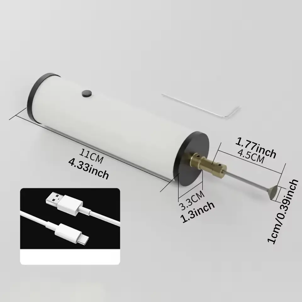 Габариты устройства составляют 11 см x 3.3 см, при этом доступны три варианта диаметров шлифовальной головки. Такой размер позволяет удобно держать прибор в руке и точно контролировать процесс обработки.