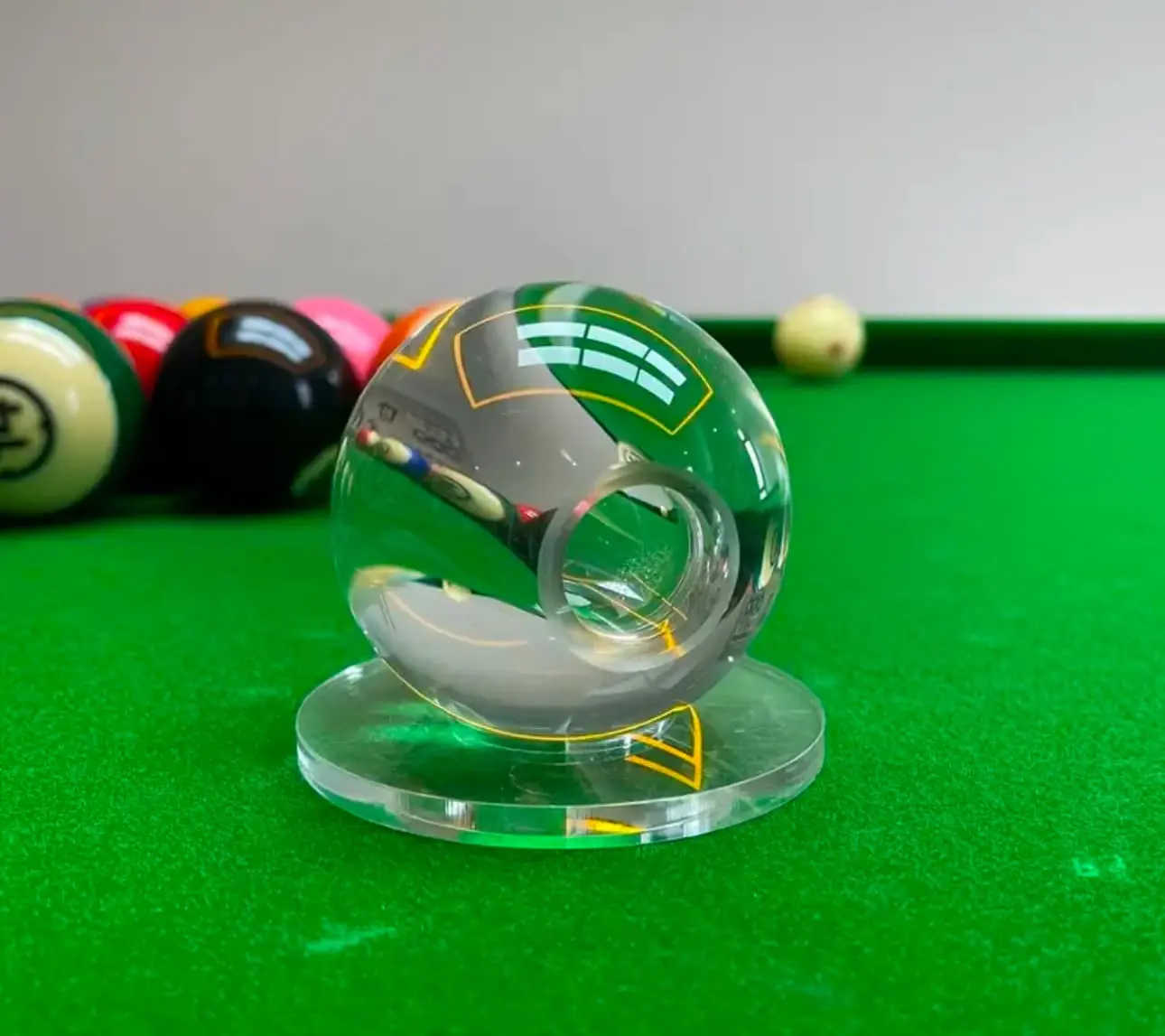 Прозрачный дизайн: прозрачный материал обеспечивает видимость внутренней структуры и помогает лучше понять взаимодействие кия и шара.