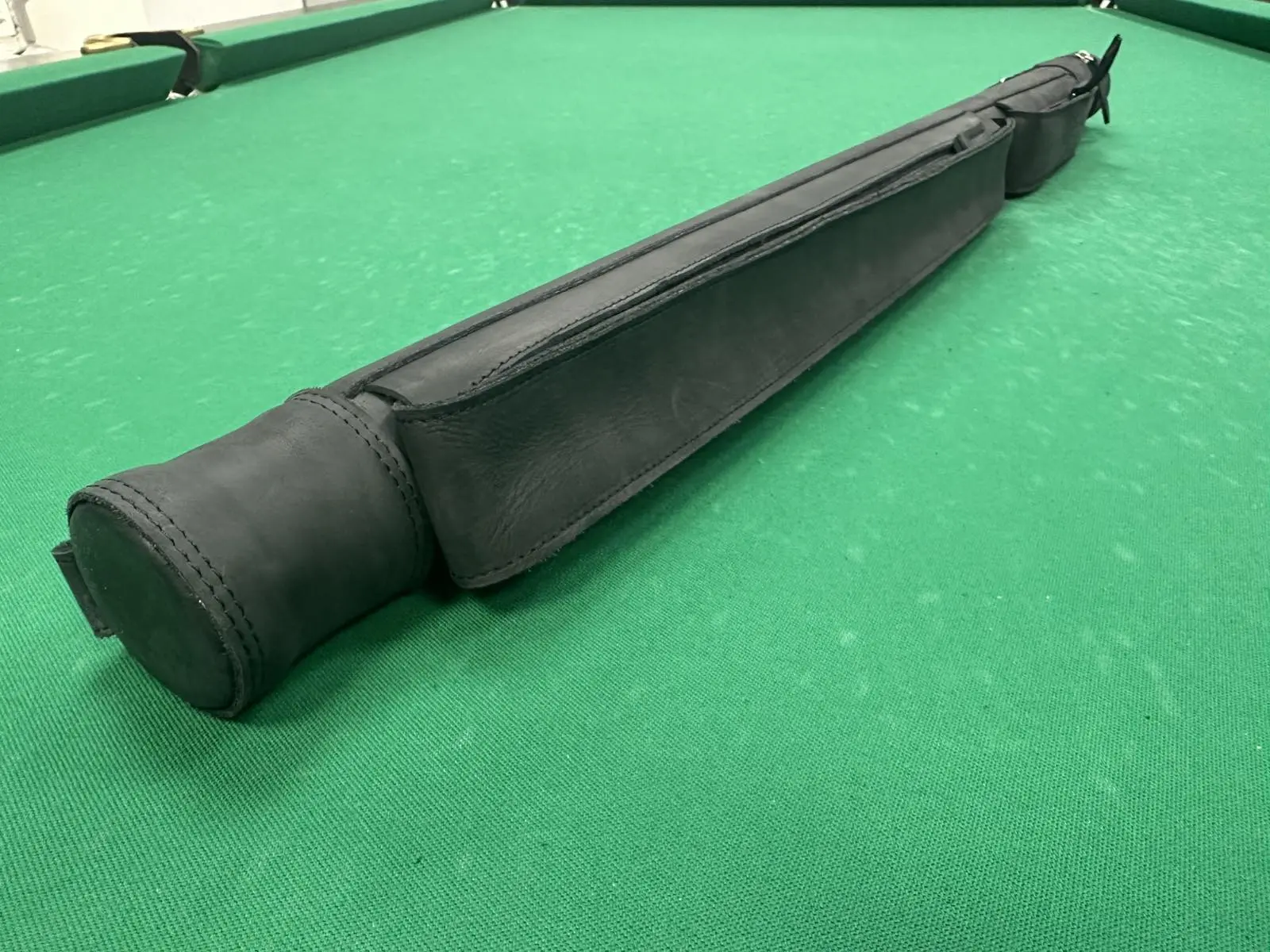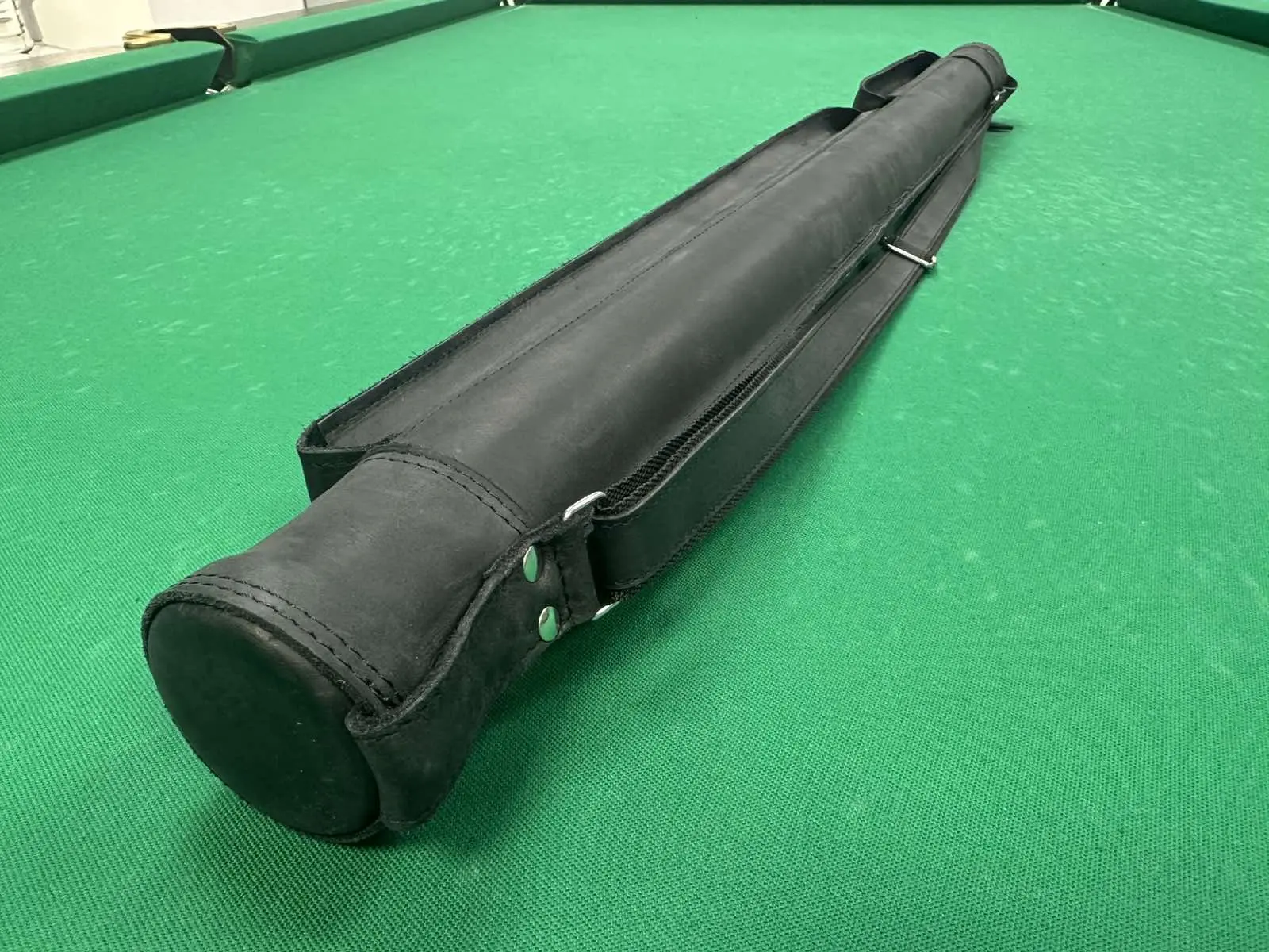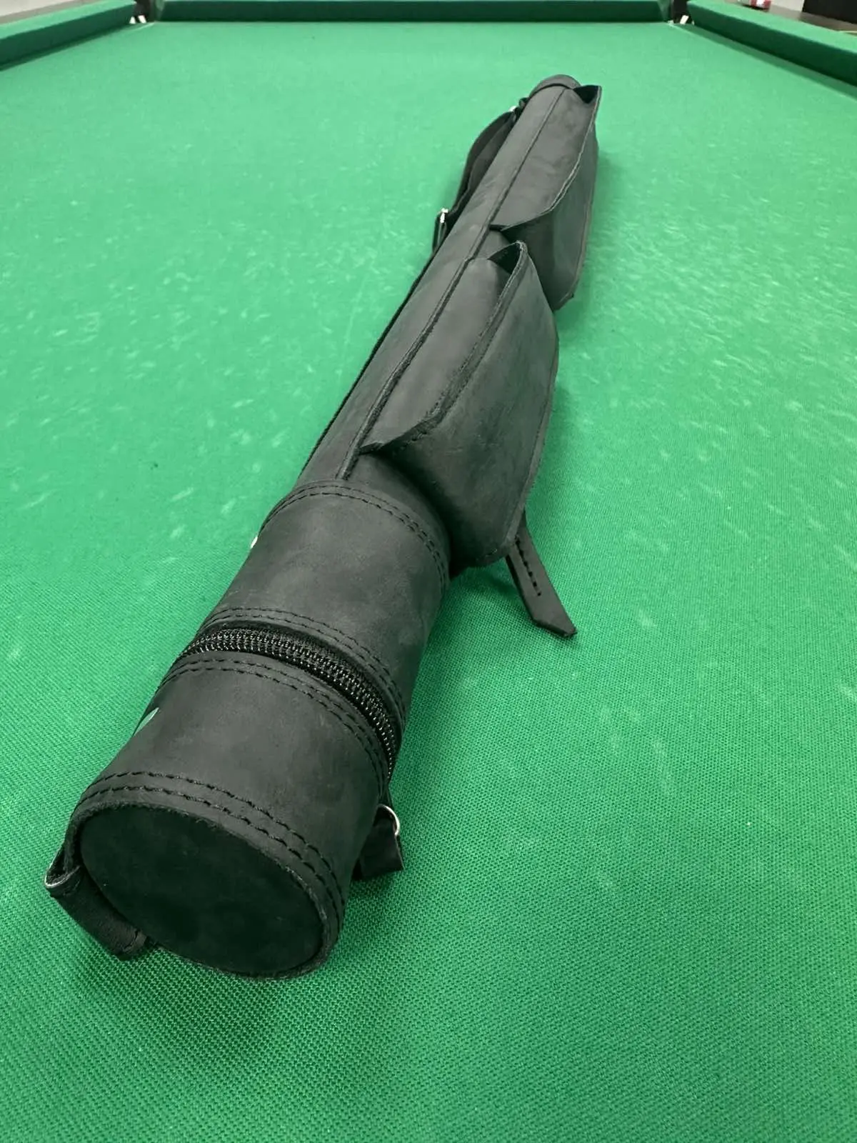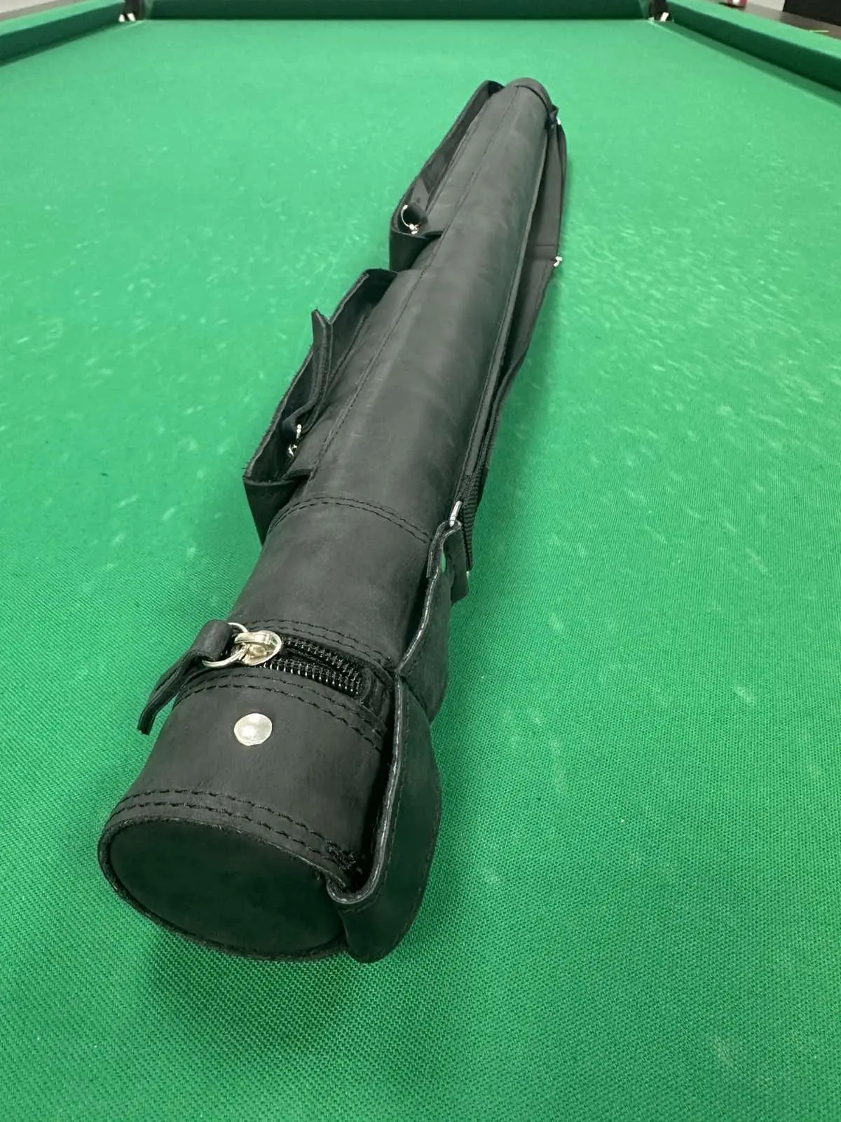 Тубус для бильярдного кия Крейзи черный 2 кармана на замочках кожа