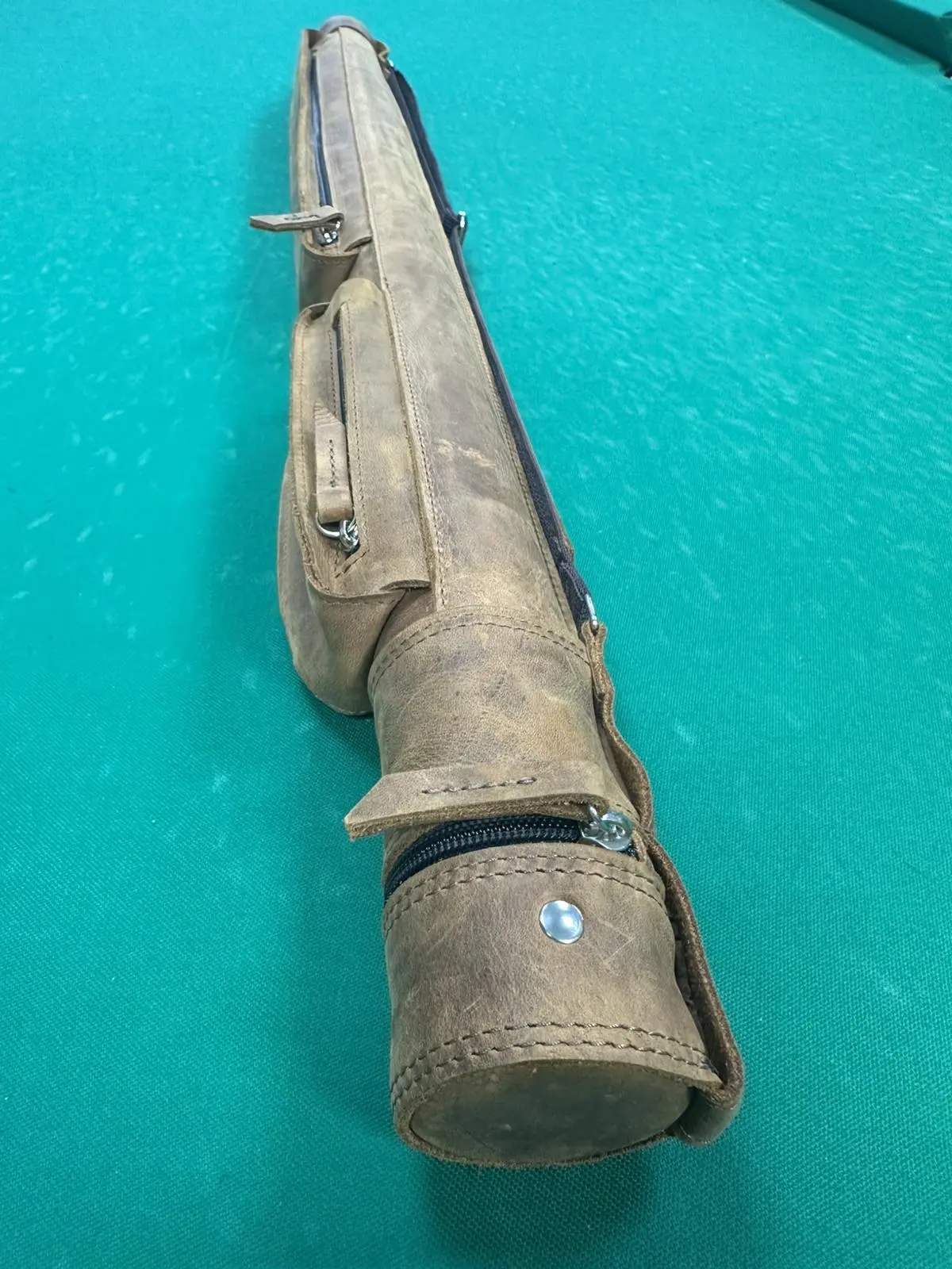 Тубус для бильярдного кия Крейзи светло-коричневый 2 кармана на замочках кожа