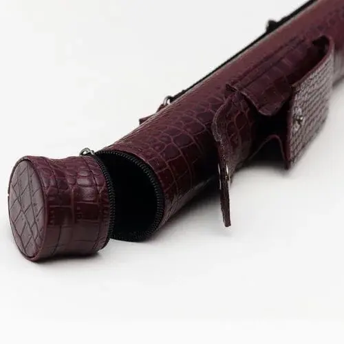 Тубус для бильярдного кия с карманом кнопка бордовый крокодил
