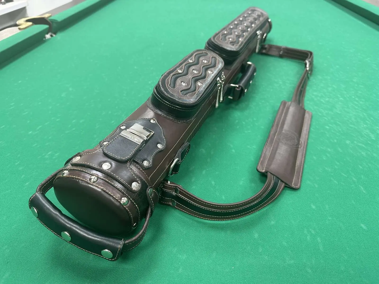 Эксклюзивный тубус ручной работы из натуральной кожи — выбор ценителей не только качества, но и стиля. Каждая деталь этого аксессуара продумана до мелочей: плотная кожа защищает кий от ударов и влаги, а элегантный дизайн подчёркивает индивидуальность владельца. Внутренняя отделка бережно удерживает части кия, исключая малейшее трение. Надёжная фурнитура, удобный ремень для переноски, аккуратные швы — всё говорит о мастерском исполнении. Такой тубус не просто хранит кий — он подчеркивает статус игрока.