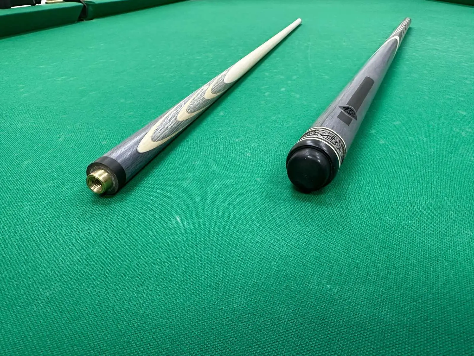 Цей кий був створений у майстерні AS і виготовлений із рідкісної породи — сірого граба, який вирізняється виразною текстурою та винятковою стійкістю. Матеріал має високу щільність і відмінну віддачу, забезпечуючи ідеальний контроль удару.