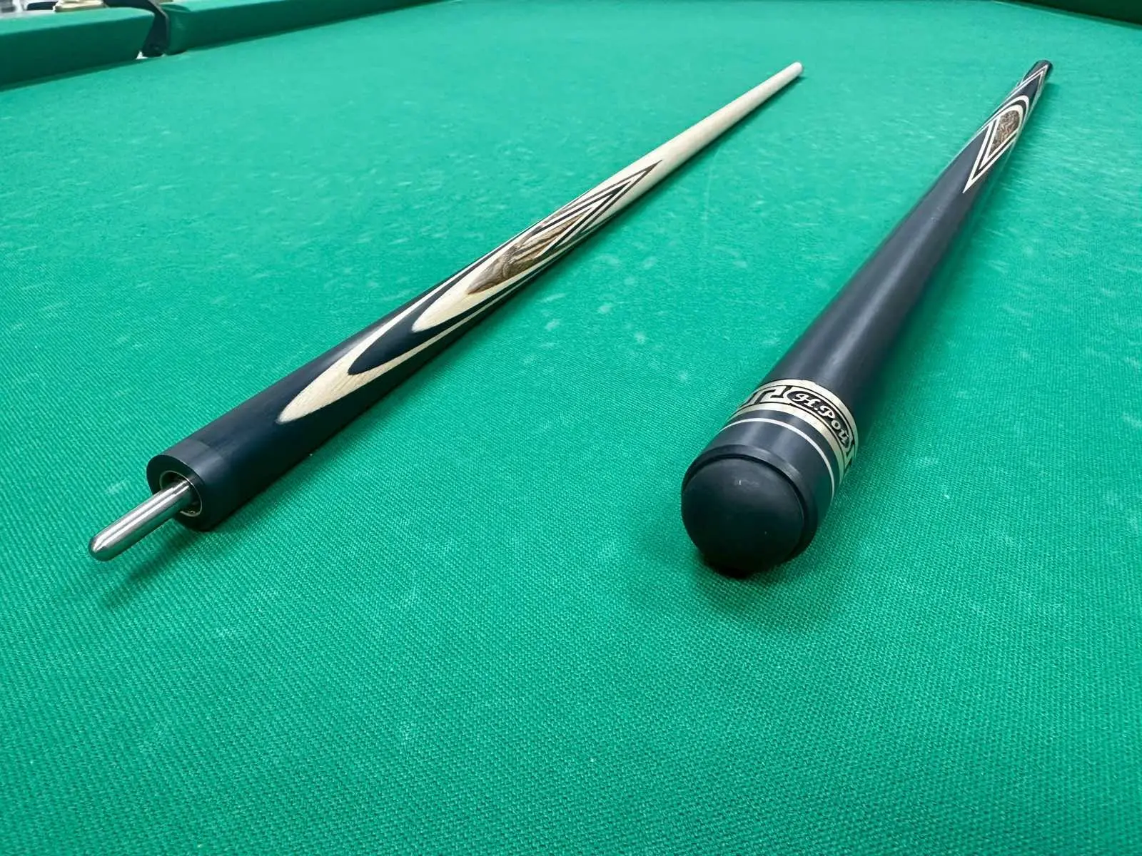 Більярдний сигнал «Boomerang» від майстра Роя Ніколая — це гармонія сили, точності та елегантного дизайну. Основа кия виготовлена з чорного граба — щільного та ідеально збалансованого дерева, яке забезпечує впевнений удар і відмінний контроль м’яча. Благородні вставки бокоте додають індивідуальності та візуальної глибини: насичені золотисто-коричневі відтінки з натуральним дерев’яним візерунком створюють розкішний ефект. Кожна деталь ретельно перевіряється майстром, що гарантує не лише високі ігрові характеристики, а й естетичне задоволення від гри. Цей кий підходить гравцям, які цінують професійний баланс, надійність і унікальний стиль.