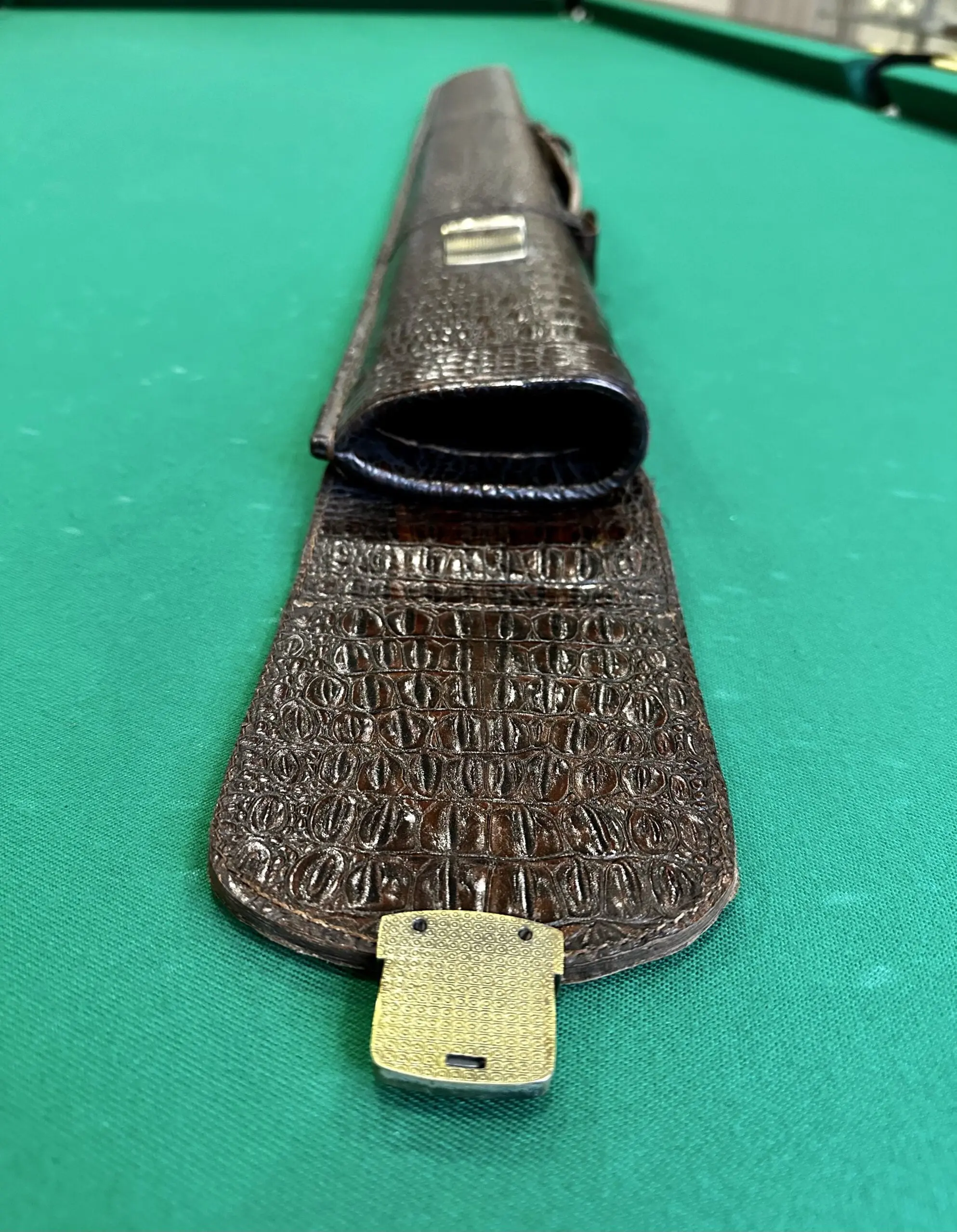 Сагайдак для кия Люкс крокодил коричневий шкіряний на три відділення