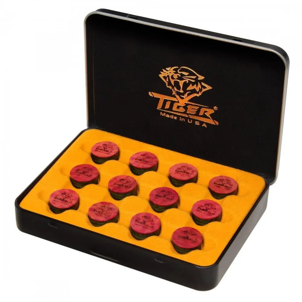 В результаті багаторічних досліджень та розробок з урахуванням рекомендацій фахівців з виготовлення київ та професійних гравців компанією Tiger Products, одним з лідерів серед виробників більярдних наклейок та засобів догляду за києм, розроблено наклейку Tiger Emerald. Вона містить десять шарів високоякісної свинячої шкіри та випускається діаметром 13 та 14 міліметрів. За роки існування на ринку ці наклейки зарекомендували себе з найкращого боку. Тому компанія Tiger вирішила зробити дизайн наклейок Emerald ще більш виразним. Тепер вони отримали більш насичений смарагдовий колір та верхній шар червоного кольору із зображенням логотипу компанії, власною назвою “Emerald” та роком виробництва. На нашому сайті представлені наклейки Tiger Emerald 13 мм у новому дизайні. Твердість за Шором наклейки Tiger Emerald має значення 96 зі 100 за шкалою А. У своїй семибальній системі виробник оцінює жорсткість наклейки Tiger Emerald в інтервалі між середньою та жорсткою (Medium/Hard).