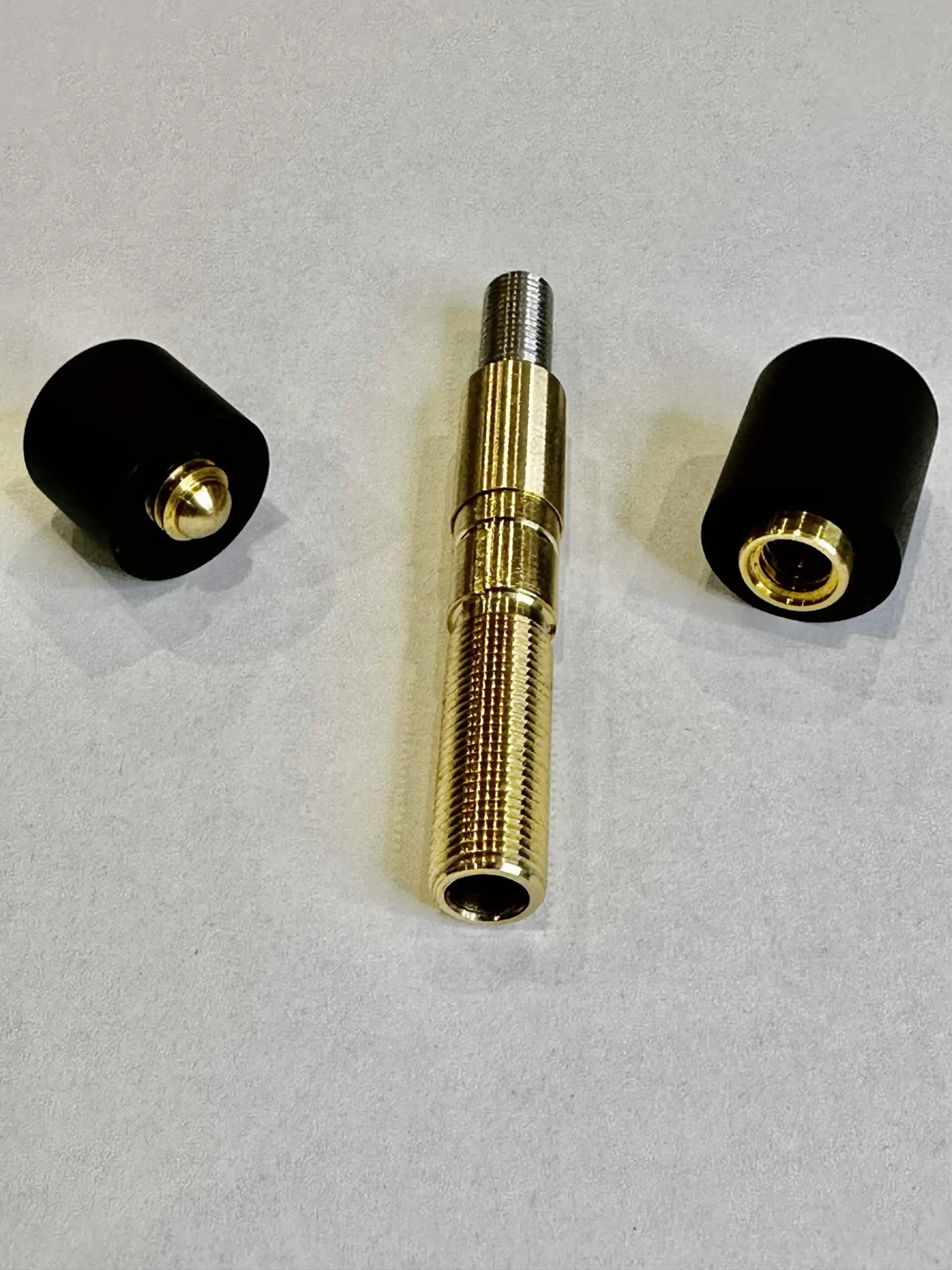 Виготовлена з бронзи і нержавійки, заглушка для кия зроблена з ебоніту всередині різьблення з бронзи.