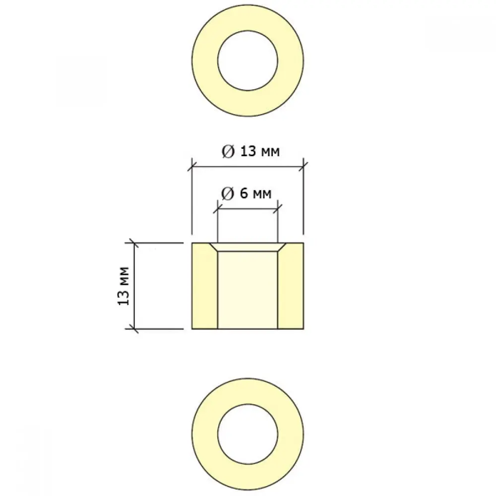 втулок 13 мм, внутрішній діаметр – 6 мм, висота – 13 мм.